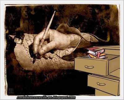 De gavetas secretas, retiro cartas antigas, escritos perdidos, escritos escondidos de mim e do mundo, tudo tão amarelado como o tempo que também se escondeu de mim, então, aquelas palavras, sem nenhuma lapidação, sem nenhuma preocupação senhoril, saltam para o colo dos meus olhos e se atiram em minhas retinas, e, como crianças, brincam de pique esconde, brincam de roda e de cabra cega.