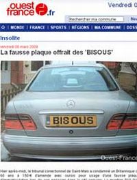 Placa do carro foi alterada para se ler bisous (beijos em francês).